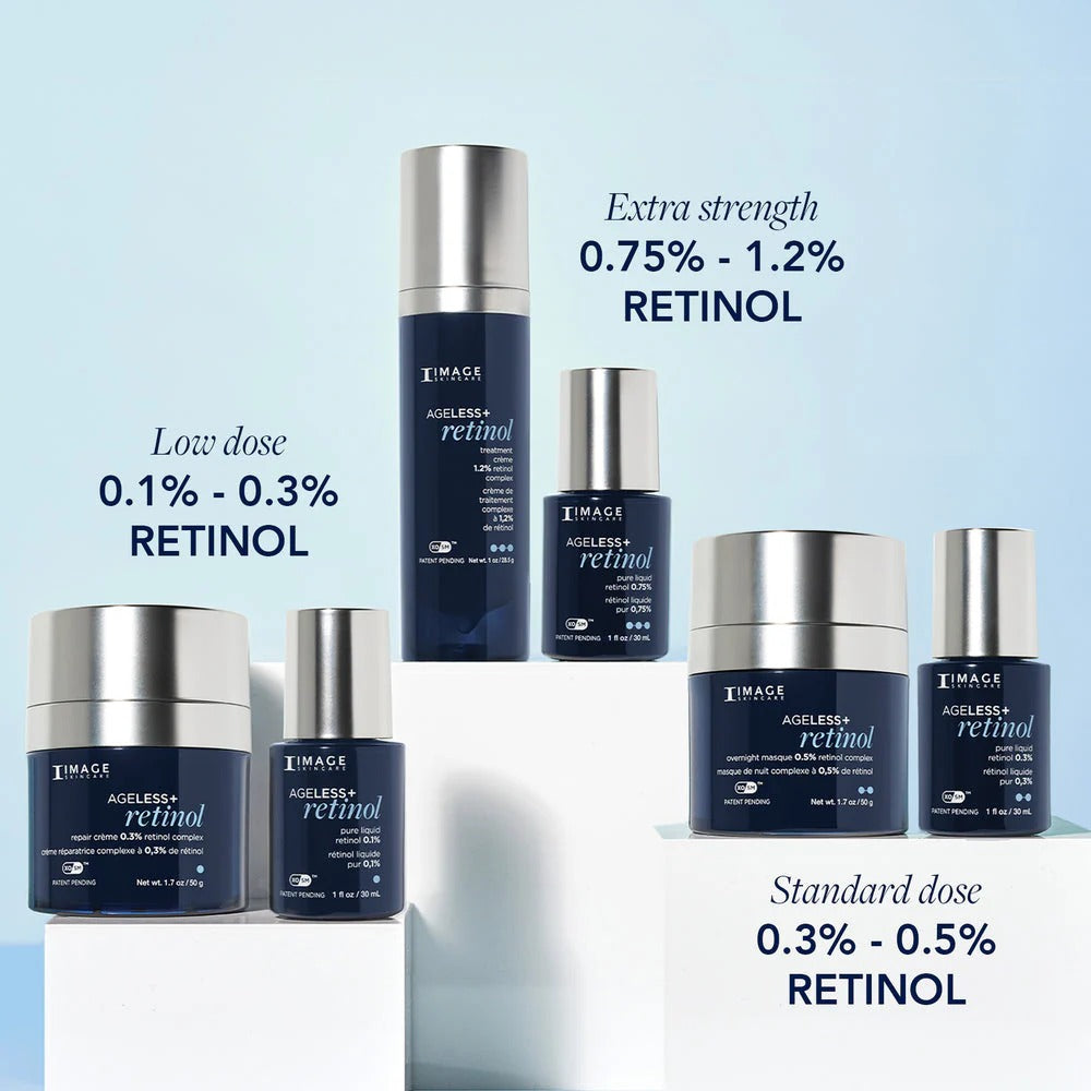- After using pure liquid retinol 0.1% at a daily dose for 2+ months without any signs of flaking, redness, or irritation, consider leveling up to pure liquid retinol 0.3%.